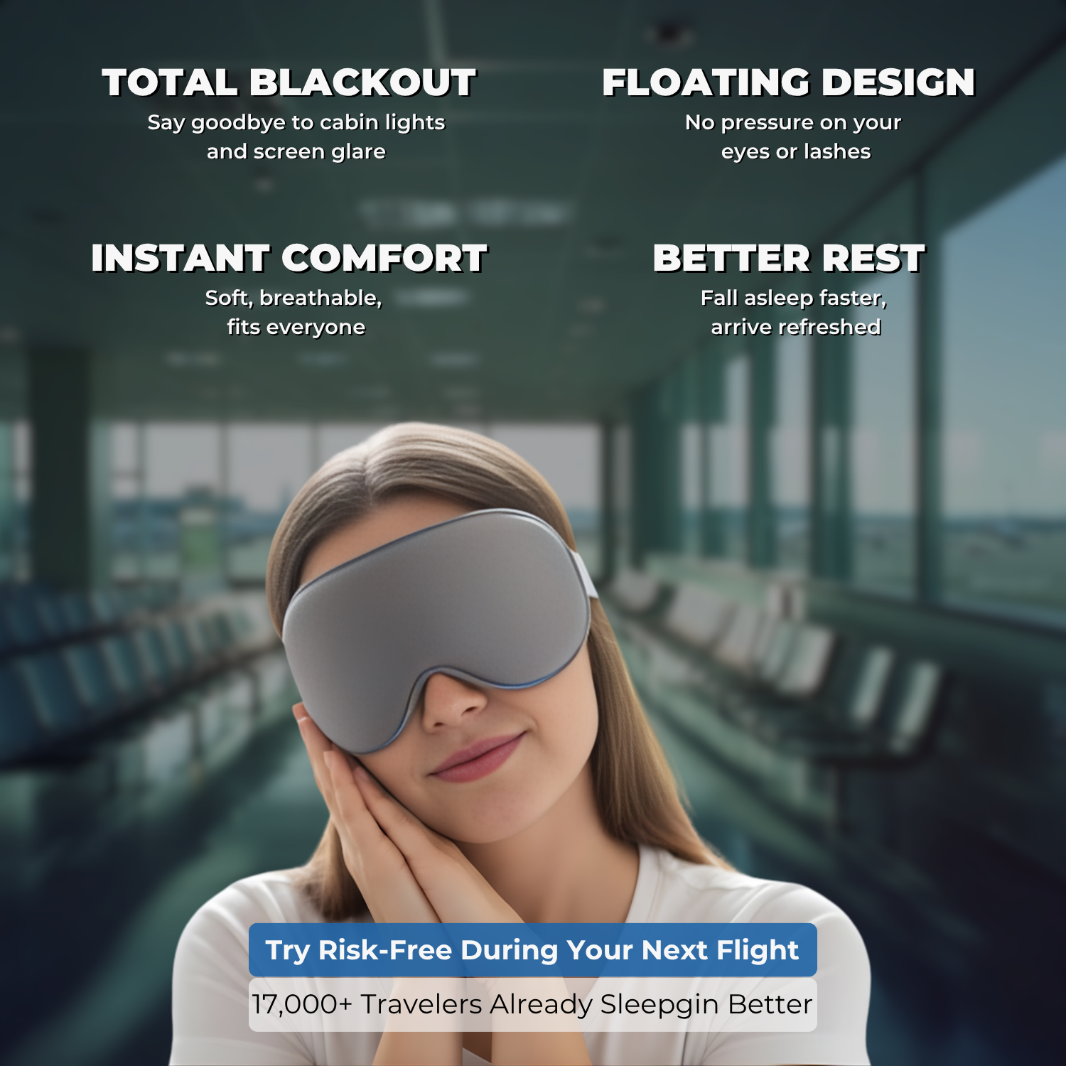 Every traveler knows the struggle – harsh cabin lights and early sunrises making rest impossible. Basic masks shift and leak light, leaving you exhausted on arrival.